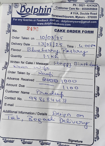 Read moreMyself went personally to give 1.5 kg blueberry pastry for birthday ... I have specifically asked about blueberry whether syrup based or not then he told me no it's natural pulp based ...after confirmation I have given the order .... Yesterday while cake cutting I was really shocked to see it's just bread with some butterscotch flavour inside not even a single pulp or blueberry seen ... These people are just cheating by outlook design I don't recommend to dolphin for birthday cakes especially 800-1000 per kg blueberry or any flavour based Worst service When I called them regarding the same they just escaped by telling will talk with chef n get back ... It's been 3 days no calls atall... This shows how they try to escape ...they dnt have any courtesy to call back and ask sorry for inconvenience...