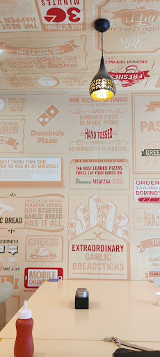 Read moreWherever I go, I first search for Domino's, because I love eating pizza made out of fresh dough. I visited this Domino's with high expectations, the vibe was little off. There were no people at the counter to attend the customers, they took really long time to come and take our orders. Next thing is, the way they were talking to customers was not pleasant, usually Domino's employees greet customers with a big warm smile, but that didn't happen here (I don't know, employee might be having a bad day, not judging here, but yeah that's what we expect when we visit Domino's right.) Tables were not cleaned properly, I was able to see ketchup marks all over. When it comes to pizza, I felt it was really bland ( I know pizza's are kind of bland) but I do expect at least the right amount of salt to be added. Tissues were not given with pizza. Oregano and chilli flakes were kept on a different table, we literally had to get up and get those from different table.