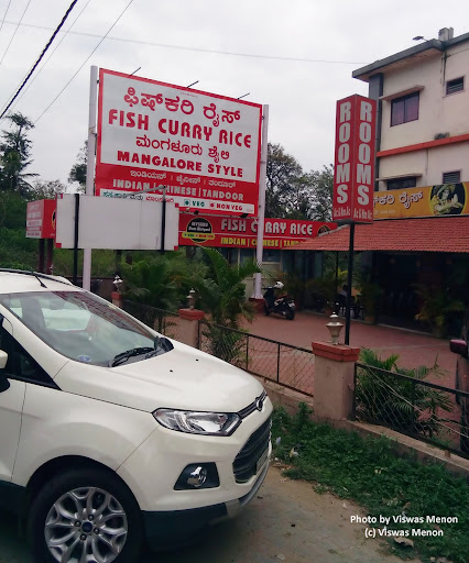 Fish Curry Rice Mangalore Style Restaurant, Kushalnagar This is a restaurant situated on the Kushalnagar Madikeri Highway near Kushalnagar towards Madikeri. It is not in Kushalnagar town although one can see their advertisements all along on the highway. It is located in Madapatna Village, Gudde Hosur, Kushalnagar. Their speciality as the name suggests is Fish Curry and Rice prepared in Mangalore Style. Although they say that they serve Fish curry and rice there is no standard Thali. One need to order the fish variety separately with the rice and one is charged on the basis of the type of fish ordered. The portions of the fish served are very small and the rates are very high. The food is reasonably ok. They have limited parking space outside the restaurant and in their compound. They have adequate seating arrangement and the place is reasonably clean. If one is interested in trying fish menus one can visit this place. Photos by Viswas Menon (c) Viswas Menon Write up compiled by Viswas Menon