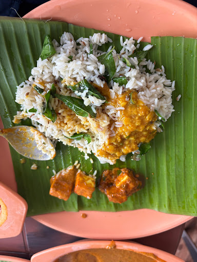 The meal options include north and south Indian thali, curries, rice and a variety of roti.