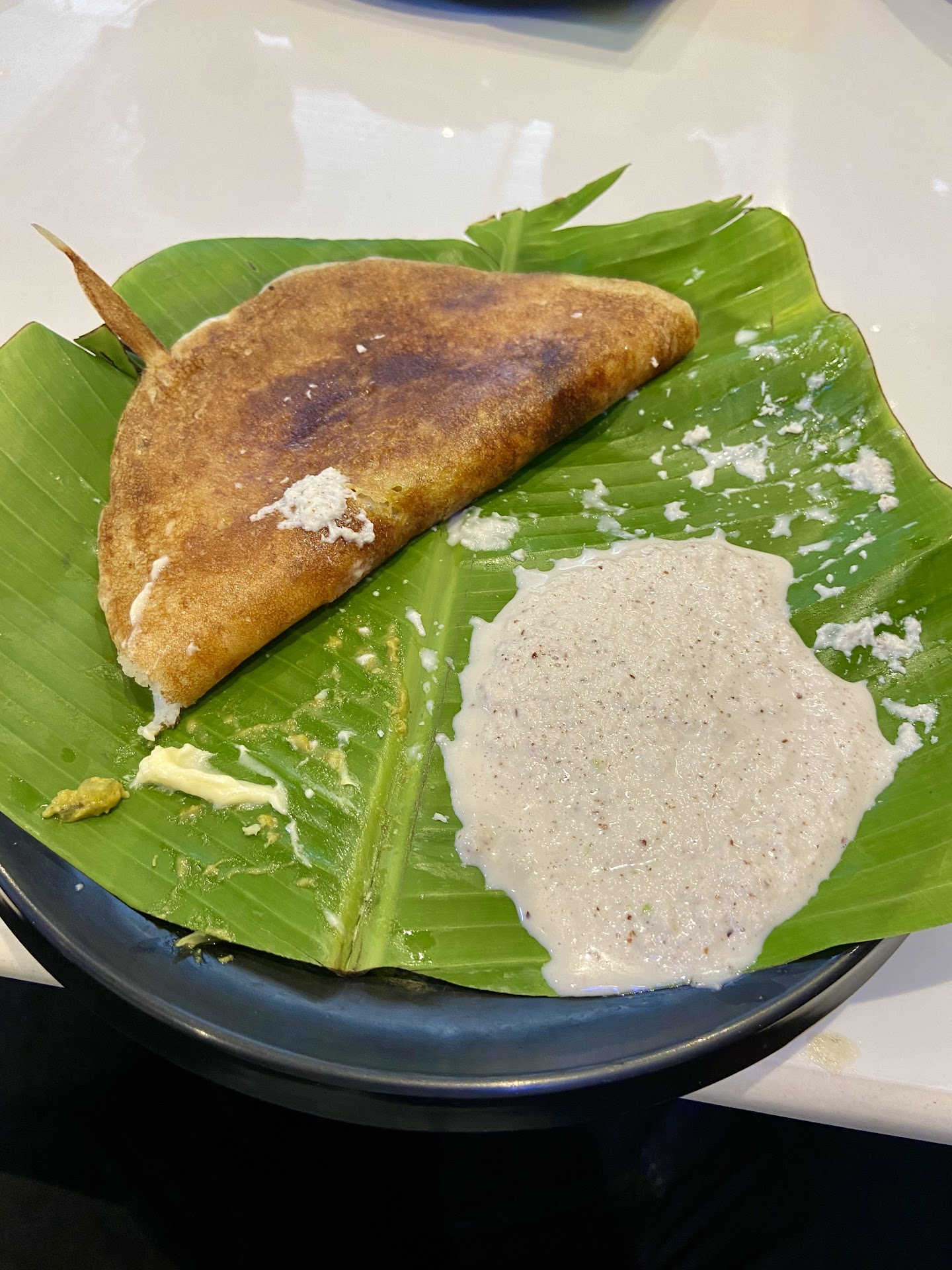 Accompanied by a mild coconut chutney, the dosa melts in your mouth and leaves a lingering, buttery flavor.