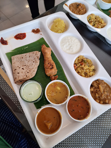 Kamat hotels never stops to delight us. The place was really clean and tidy the staff was very welcoming and the food was just delicious. The menu breakfast dishes and also has south indian and north indian thalis, soup, fast food snacks like noodles, Gobi, etc etc various dishes from Kolhapuri, panner, mix veg, mushroom, cashew, and tandoori roti, naan. Chapati use, puri with rice items white rice, fried, curd, jeera, veg biriyani etc etc and sweets such as jamoon.the prices are also reasonable like in any Kamat restaurant We really had a delicious meal in the afternoon.