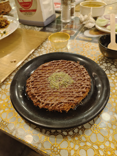 Finally, we ended the meal with chocolate kunafa, which was a pleasant surprise. This was my first time trying it, and it did not disappoint. The dessert was sweet, chocolaty, and had the perfect texture, making it a delightful conclusion to our dinner.