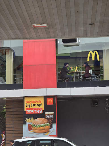 Parking: at HPCL. so good options. Drive through: narrow and sharp. Order ahead: 2 double-sided touch screens. Close to each other. Watch out for elbowing or bumping into someone. Menu: My US friends felt more options here, and of course, no beef Food: McD maintains the same standards. Meets expectations. Dining area on 1st floor: not well maintained seats: waste food particles hanging around. Cramped.