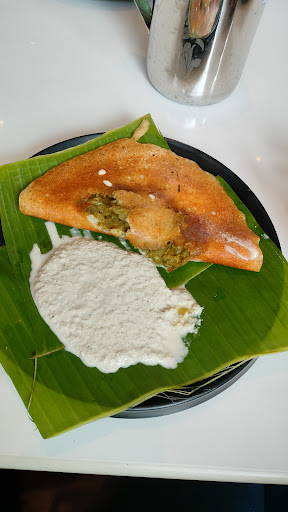 3- Food - This is the controversial opinion. Is this the best dosai I had? No. But will I go for it again? Yes. Why? Because its unique, different and tastes good. It does not satisfy the version of "dosai" that i have in my head..so it wont be my first option when i think of Dosai, but it will definitely be a recommendation when Mysuru is the subject of talk. The dosai itself is soft. Its not crispy. It does not have crispy outer-soft interior thing going on either. It is simply full on soft. So if you prefer the crispy variants of the dose, this might not be for you. The pallya stuffed within, is not a potato pallya but a vegtable pallya and this is where this dosa gets its spice and flavour. Once again, if you prefer potato filling, this might not be for you. The chutney, is completely devoid of spices as the pallya/sagu does that job here.