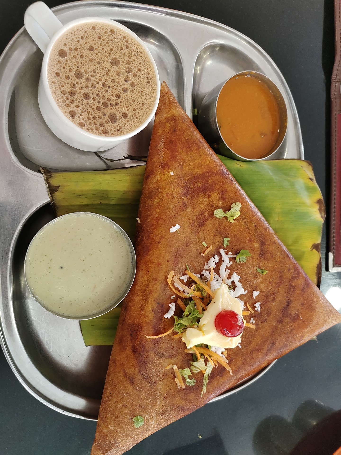 The masala dosa was nice and crispy but there was a tiny amount of masala in the center. The coconut chutney was missing seasoning and tasted more like garlic than anything else, the salna was tasteless and missing the most basic ingredient - salt.