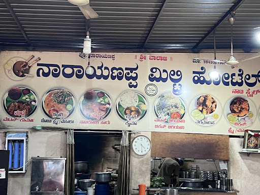 Narayanappa military Hotel @Devanahalli........... The food was very good taste and great value for money "The person who were sitting in cash counter in this hotel were incredibly welcoming and helpful throughout our stay" the staffs we're friendly and helpful with good service.....staffs are wearing named with neat clothes , decipline and they treated as well.......the food was really tasty* Dishes we had mutton biryani,parota with chicken curry and naali mule is very famous here and it was like naati style dishes,so our family likes to visit this hotel and i liked mutton biryani with kabab it's was yum 😋so that's why i always come to this hotel.....we are so happy to take food in this hotel.... who ever visit devanahalli try this hotel to have hot mutton biriyani with crispy chicken kabab........i want to thank server's in this hotel...... Good serving was done for us Location...