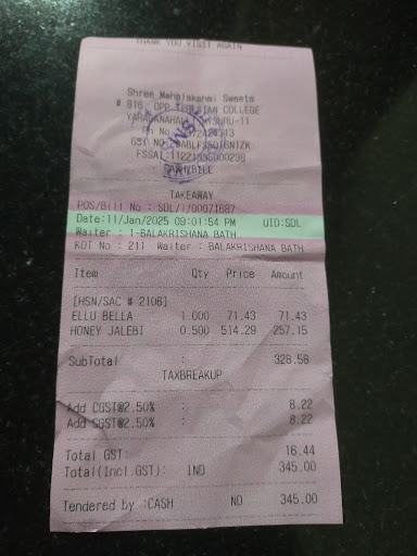 Read moreThe Mahalakshmi sweet shop on Bannur road, Mysuru, rounds up the bill for customers, even though I am paying with UPI payment. For example my bill was Rs 530.64, but the cashier Mr. Kumar Swamy insisted I have to pay Rs. 531. I explained that I am using google pay and I can pay exactly 530.64, but he refused and rudely said that I have to pay 531. As a customer I have the right to pay exactly for the price of products and services provided, but this shop is breaking the law and consistently unfairly charging...