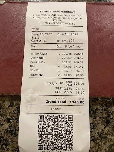 I highly recommend Vishnu Vaibhava for a luxurious and memorable experience.This restaurant is a must-visit for anyone looking for delicious vegetarian food in a welcoming atmosphere. The food was fantastic! Every dish was bursting with flavor, and the presentation was beautiful. The service was excellent, with friendly and attentive staff.The restaurant offered a delightful and satisfying vegetarian dining experience. From the moment we entered, the ambiance was inviting and comfortable. The staff were incredibly welcoming and provided attentive service throughout the meal. The food itself was the highlight, showcasing a range of flavors and textures that delighted the palate.