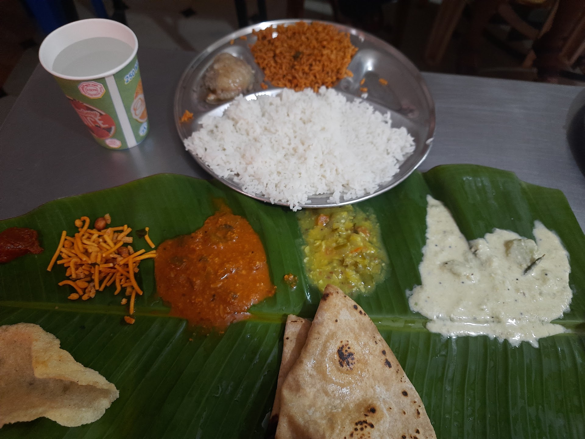 As soon as we went, we ordered for 2 lunch and one plate puliyogare, sakkare Pongal, and curd rice. They took the order and all of those waiters disappeared. After about 10 minutes they put plantain leaf and again disappeared. A guy they comes with one plate puliyogare and sakkare Pongal and says that the curd rice is over. Remember that it is still 12.45 and curd rice is already over! Still there is no sight of the lunch which should have been served by now as it exactly lunch time.