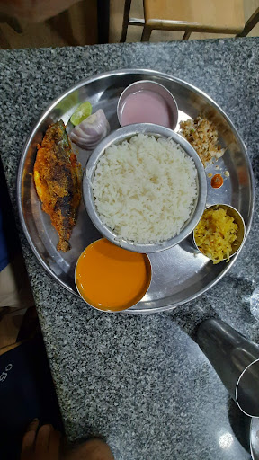After reading great reviews, stopped by this place for lunch on the way to Goa. This restaurant is family run and I saw ladies cooking the meals in the kitchen. This place has 2 sections, ground floor catering mostly to the local crowd or regulars and 1st floor which is air-conditioned catering to families or occasional visitors preferring better comforts. Food (5/5) - We ordered 2 fish meals, 1 with Chanak fish & the other with Surmai (Seer/King) fish and a separate Surmai Rawa fry for the kid. The fish meal is absolutely delicious. Generally in meals, the fish is the star and the rest of the items are just added to make it a meal but here this is not the case. In the meal you get brinjal/eggplant masala, mussels cooked with coconut, fish curry(with some sardine pieces), and the fish fry. Every item was delicious and we were pleasantly surprised how they tasted. Fish fry was very juicy with the right amount of spices and tasted different. Service (1/5) - The service here is non-existent. We sat on the 1st floor and there was only one person attending and you literally need to beg to him(pun intended) to give the menu or take our orders. No replies if you ask for any recommendations or ask what does an item on the menu means. I literally went down and asked at the billing counter about the restroom. After asking maybe 10 times, the guy (most probably the owner) responded and directed me to a place around the building on the backside and that place should be avoided. So anyone planning a stop over with a toilet break while passing through Karwar should be aware of this. There is no restroom within the restaurant. I would have rated this place 5/5 only for food but the service experience takes out 2 points. Also the prices are not that cheap. I would recommend this place only for their food and nothing fancy. Next time I am around Karwar, would head to this place as I already know...