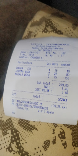 Ā Ā Ā Read moreThimmadas Hotel, located in Somanahalli, Karnataka, serves up a breakfast experience with its ups and downs. While it offers a good range of breakfast choices, the prices might not sit well with those watching their wallets. Paying 72 INR for Idli Vada, 81 INR for Masala Dosa, and 19 INR for a cup of tea could be a bit steep for some.