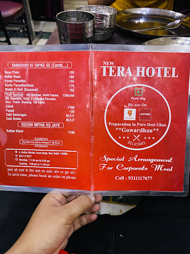 Read moreOne of the outstanding dhaba of New Delhi. Located on the Arya Samaj - Ajmal Khan road intersection, one of the busiest stretch in Karol Bagh is the New Tera Hotel. The word 'tera' means belongs to you and is in reverence to the God and the customer. It is a modest eatery with ample of sitting space on the crammed seating at 3 levels. Food quality is outstanding and expect a quick service. The place is usually crowded at the lunch/ dinner time but turnaround time being fast, expect to be seated in 10 minutes. Reasonable pricing, satisfying portion, sumptuous meals is the hallmark. People paranoid about the hygiene should be avoid, freshest food in town...