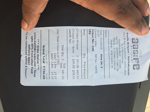 Deeply Disappointed with Quality and Zero Accountability - I have always been a fan of Aasife Biriyani and a regular customer, but my recent experience with the Kazhakuttam branch has been extremely upsetting and completely unacceptable.