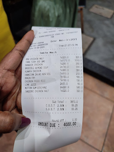 The person who took our order have given us suggestions and very polite in nature. All the staff who came to our table for serving, cleaning etc. carried a good smile in their face. That itself make a customer satisfied. We were a group of 5 adults and a kid. The total bill amount was 4000, which is ok for the overall satisfaction we got. Here are the reviews of the food we had.