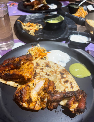 Barbeque chicken, tandoori chicken - super moisty chicken served with mint chutney and mayo. 320 rs for half portion