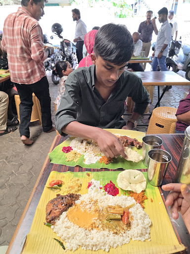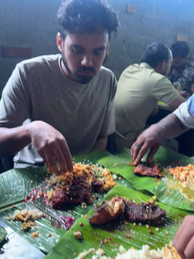 Read moreThis place has been in business for 43 years. A family run business run out the back of thier family home. No nonsense mess style dining. Be prepared to share your table with strangers. The place is hard to find although the fantastic auto drivers of Calicut will know where it is. (Shout out to these guys - honest, decent and straight forward - they are the best in the c and make travelling in Calicut a breeze.) They have 3 seating areas - one under a tached roof with about 8 tables. The other 2 are under some sort of corrugated roof with fans to keep you cool. Watch your head in the thatched area - there are a couple of low hanging beams. I should know- I walked into one. Food is served on banana leaves. Food is basically rice (the fat grain kind) with vegetable, a yogurt based vegetable gravy, and fish gravy (coconut sauce - like thai yellow curry), a small bit of pickle, and a pappad. Then it's your choice of one of the fried fish specials of the day. When I went they had mackrell, shark, and king fish. I tried all three and they were excellent! When they serve a fish they scoop some of the oily fried goodness with fish and spices onto your rice (like scrapple) and that is just a little piece of heaven! No limit on the servings of rice or sides. Water is actually konjee water served warm. A little note about the fried fish: some like fried fish to be crisp and this fish is not. So if you aren't a fan of non-crisp fried fish then this place is not for you. There really are no other non-veg options. The fish is fried in coconut oil. The flavor is the food is traditional malayali food. It is simply excellent in that regard. It does not get more...