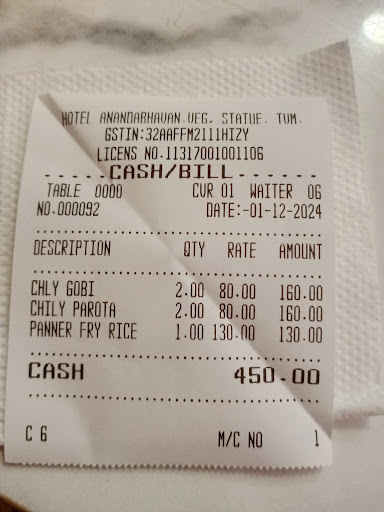 Read moreBland food, substandard service and easily avoidable hotel. Being a resident of Tvm we decided to give it a try, managed to hop in around 8:30 PM. Despite the fact there were only 2-3 tables occupied waiter took good 5-8 minutes to attend our table. The cashier whom I feel is the proprietor wasnt keen on about why the order wasn't attended.