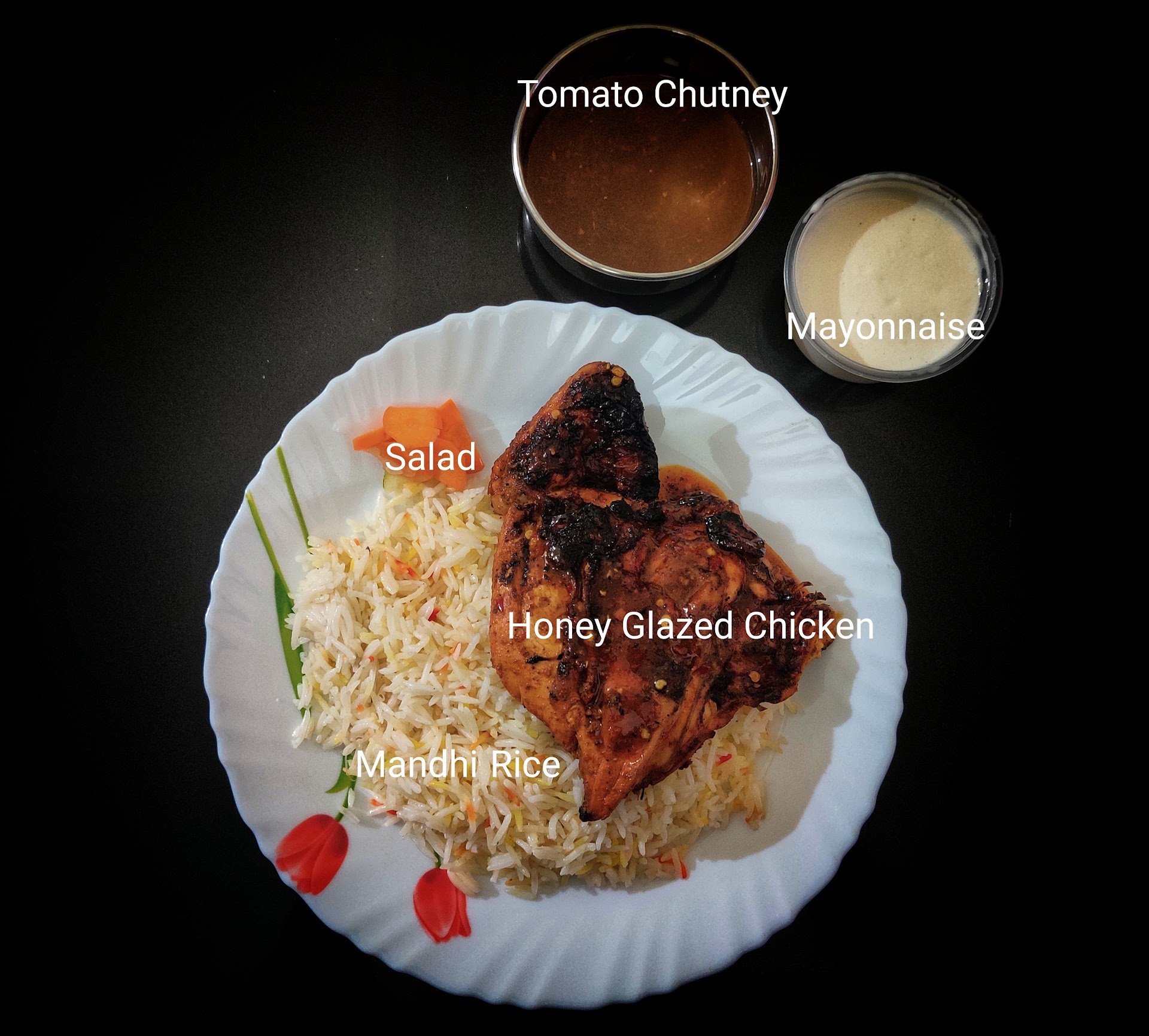 The second time, we ordered the Honey Glazed Chicken along with Mandhi Rice (because we just couldn't get over it's flavour and taste from the last time). I've attached a photo of the same along with this review. If I'd rate the Peri Peri Alfaham Mandhi a 5/5, Honey Glazed Chicken is just as good to be given a 4/5.