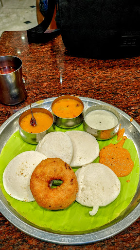 Cuisine & Menu: Aryaas Park serves a diverse range of vegetarian dishes, including South Indian staples like idli, dosa, vada, and appam with kadala curry, as well as North Indian and Chinese options. The restaurant is particularly noted for its ghee roast dosa and filter coffee.