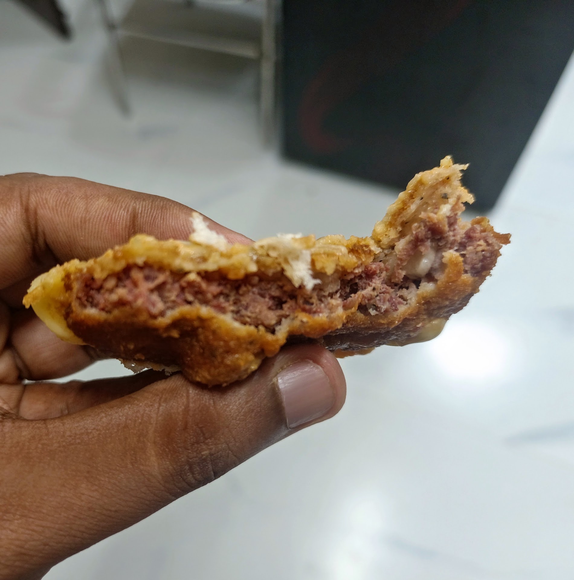 First time visiting this cafe today, after seeing so much positive reviews. The attending guy was pleasant and nice. I ordered loaded fries, chicken lolipop, chicken burger, beef burger and prawn pops. Chicken lolipop was nice, pops had no taste of prawns, but ok. Everything else horrible. I don't know what they added to loaded fries, I even tasted turmeric, it was bad. The worst was beef burger, patty was too much undercooked ,(photo added) smell of raw meat, three or four slices of thick tomato, extremely sweet local bun. It was unpalatable. I spent 725 rs there today, I consider it as my worst spending. One time, I will never visit this place. Sorry for the harsh review, I write this immediately after eating your food and the taste is still on...