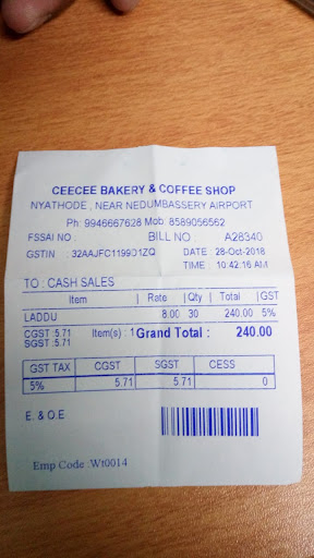 I like the cee cee Beckery because of their service if you go there you will feel it there is available cake's black forest white forest like other type of good birthday cake ๐ ๐ ๐ and there also available a lot of small cakes there is available tea I have drunk that that is super tea I have drunken one there also available tasty cutlets and chicken real quick and The meat real quick and egg puff and chicken puff there is also available a lot of vegetable items like vegetable puff and vegetables cutlets there also available the samosas and banana fry ๐๐ pathiri and there special items like uzunnu vada ulli vada like that and there also available the best ladu carrot ladu and collor ladu there is best place for couples and family for having a tea there is also available the best pizza and burger with cheese and meat ๐ these all are getting quick response there also available a lot of snacks like mixture peanut roast jillebee and there aslo available plum cakes and other tasty things cashew milk badham milk and fresh cashew and badam pistha like that there also available cool drinks and fresh juice and fresh milk shakes and I love them and specially their workers they are giving the most good service here and one thing that there is available all kinds of the awesome price ๐ here and there is available best Horlicks and boost and there is also available iceream all the time with your family and friends and girl friend is best wishes for a happy and healthy food...