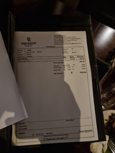 Read moreOn Jan 09 I visited Raviz just to have a better time over my stay in calicut for few days, I stay in near by hotel. I have no complaint over the service or hospitality, but I must advise people that it is dangerous to order food from Raviz. I ended up in hospital due to food poisoning, now I feel it was a terrible mistake stepping inside Raviz. I will confidently say I would never visit Raviz again or advise anyone who I know. I will attach my food bill and my hospital bill/prescription as a proof for...