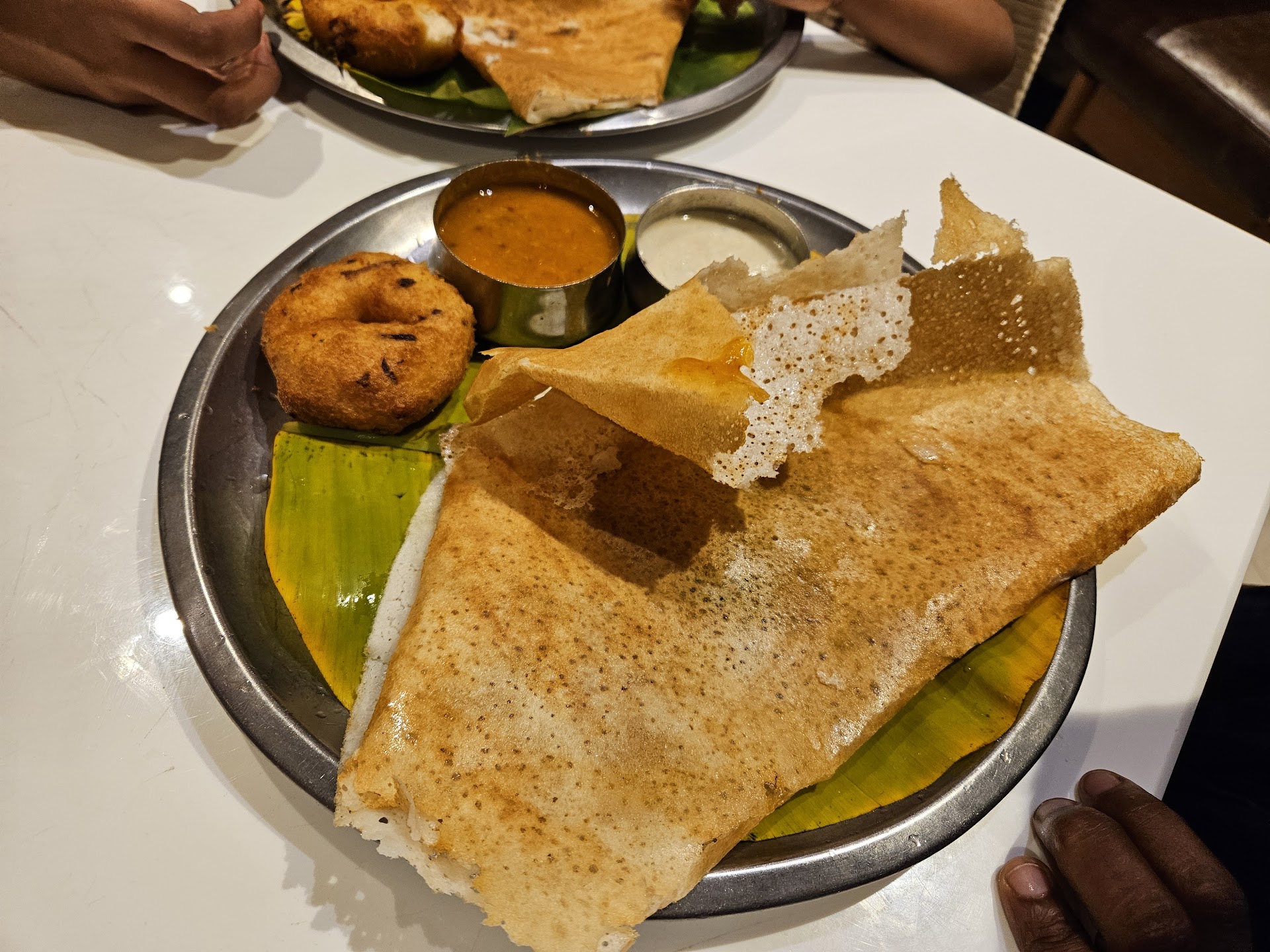 The first floor of the restaurant boasts a clean and welcoming atmosphere with a blend of traditional and modern decor. Thogh seating arrangement is crowdy, the service is quick and friendly, making it an ideal place for both family dining and quick meals. The classic masala dosa at South Indian Delight is crispy and golden-brown, filled with a flavorful potato masala. It is served with a variety of chutneys and sambar, which add a delightful contrast of flavors. Medu Vada:These deep-fried lentil doughnuts are crispy on the outside and soft on the inside. They are typically served with sambar and coconut chutney, making for a perfect snack or accompaniment to other dishes.