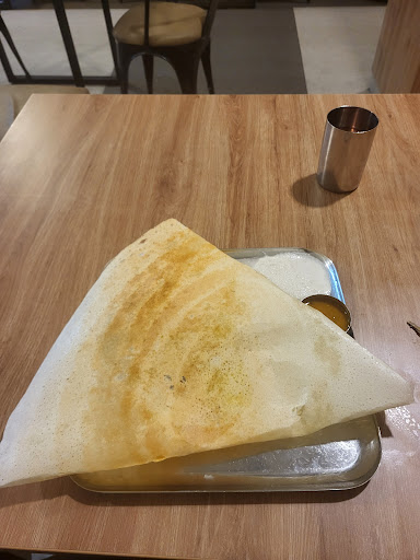 The restaurant is small, with decent interiors and a pleasant ambiance. However, when compared to other nearby vegetarian restaurants within a span of 300 meters to 1 km radius, such as Bharat Coffee house, Maruti Vilas, Abhirami, Saravanabhavan etc.. this one ranks near the bottom. The masala dosa ordered was excessively oily, and the plate provided did not have adequate space for chutney; instead, it was simply poured onto the side, causing everything to mix together. The chutneys offeredโcoconut, mint, and tomatoโlacked flavor and distinction.
