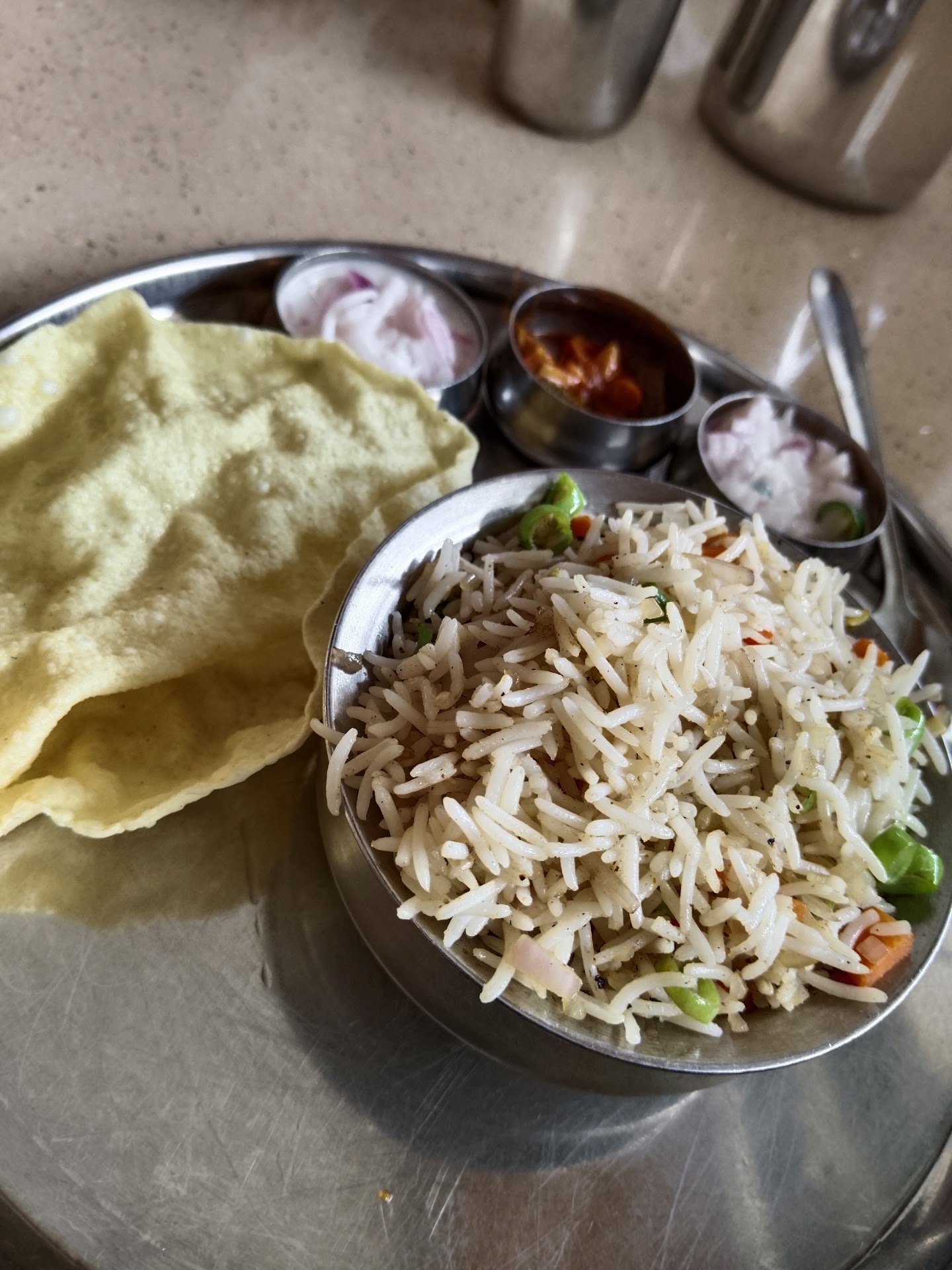 Read moreBrilliant menu and what I had was delicious... Was in a hurry so got in for a quick bite of vada sambar. Unlike other hotels around the area this one had a better presentation of vada dipped in sambar which was yummy. Missed chutney though. The menu had some amazing items which I'd like to try when I'm in Changanacherry next. Price however I felt was a bit high but for the better experience than other hotels in this area it's reasonable.