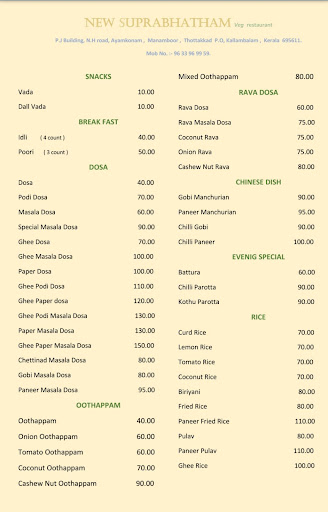 Read moreSuprabhatham is more than just a hotel; it's a culinary haven for vegetarians. From the moment you step in, you're greeted by an aroma that promises a gastronomic delight. Their vegetarian dishes are nothing short of exceptional, each one a masterpiece of flavors and textures.
