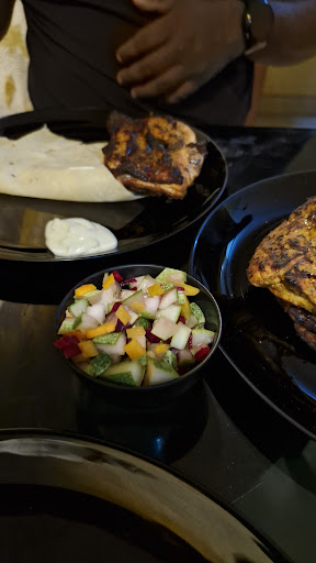 The chicken was mostly tender and juicy, though slightly dry in some areas. The flavor and seasoning were enjoyable, but could have been a bit more intense to make it stand out. The grilling was well-done, with a nice smoky char, though slightly uneven in parts.