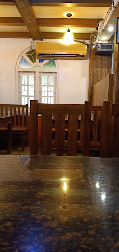 Restaurant owners have tried too much to create an antique theme and it ended in a total disaster. They have used a lot of coloured glasses and lights with photographs and historical writings. In total I doesn't get any good vibe there.