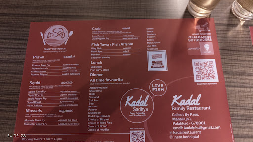I have been to this restaurant many times since it has started , Due to covid there has been a very steady downfall in the visitors , now when i go here i hardly find anyone specially in weekdays . Although they have more orders online and through zomato . Till a year ago this restaurant was doing very good , now i think its not that vibrant , food although is good but they have reduced the menus and due to less crowd and even less staff service is also slow , but still i come here only for fish dishes , not so good in prawns items bcos in palakkad you dont get good prawns but their fish items are still decent compared to others , their soups specially nadan soups are very good . I cant say anything about their chicken and other items since i never eat chicken and other stuff here . Overall its a great restaurant which was being doing very good in past and i hope it comes back again to its best again as before . Some observation from my side for improvement # Staff are very less and they are hardworking but they seem to be running here and there so feel sory for them but service is also getting late # Speciality of kadal is seafood and few times i had other items like chicken and beaf dishes i did not like , so either concentrate on seafood only or if you are serving other items then make it as better than your seafood items . # Washroom need some quick maintenance , little bit cleaner with good handwash is must and tissues welcomed .