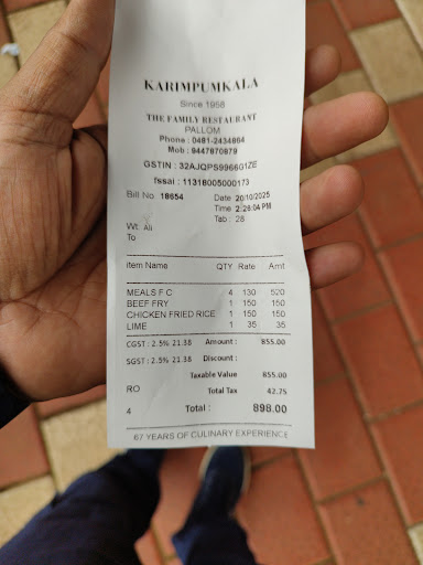 Karimpumkala The Family Restaurant is an excellent dining destination that I highly recommend to anyone looking for an authentic and delicious culinary experience. The restaurant has a rich history and reputation for offering some of the best local cuisine in Kottayam, and they have certainly lived up to their name.