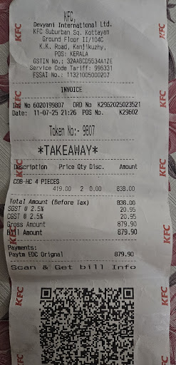 Hi,to all food lovers out there, I am a great fan of broast chicken and I started eating this about twenty years ago in Jeddah. Al -Baik and KFC were the big names in broast chicken and al-baik had a far greater fan following than kfc. The secret of their success was the tasty garlic paste they served with fried chicken and it was slightly more reasonably priced than kfc. Now, broasted chicken might appear to be easy to make but it is not quite so. After coming to kerala I had gone to many restaurants serving this thing but many of them closed after a while. In Thodupuzha itself three restaurants tried to make it but failed miserably and had to close down. The reason is that the typical Indian mentality reduces quality to match up with inflationary pressures. so they start saving expenses here and there and the result can be disastrous on taste and quality. The only people who don't recognize this are the restaurant owners! people recognize it immediately and call it quits. for eg: they start saving on oil a little bit reusing it a few times. Now, the oil absorbs chicken fat on the first fry and in subsequent fries it cannot absorb so much chicken fat and after a while the chicken fat in the oil even goes back to the chicken and the result is horribly tasting chicken. Now, in my experience, KFC gas taken great pains to ensure consistent quality discarding so many things at the right time which other restaurant owners normally does not do . this is why the price is a little high compared to ...others. Again, I felt better having more privacy without the disturbance of waiters on the first floor. but that is only my personal preference and I have no arguments with those who disagree. I was told by the restaurant manger that they use suguna chicken from TN but in my opinion Venky's is better than suguna . I did not find drinking water anywhere on the first floor and the pepsi which is a must with fried chicken was priced way too high. I hope that kfc would reduce the price of essential extras like pepsi, bun and French fries. garlic paste is really an absolutely essential thing with fried chicken but God knows when kfc is going to realize that. Hoping that this review would be helpful to all good food lovers and to...