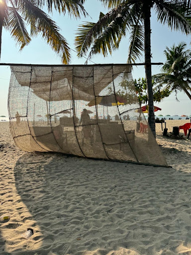 Louvre Café at Marari Beach is a hidden gem that offers a fantastic seaside dining experience. My wife and I had an amazing meal here, enjoying a delicious pomfret fish and fresh prawns. The seafood was incredibly fresh and cooked to perfection, bursting with authentic coastal flavors.
