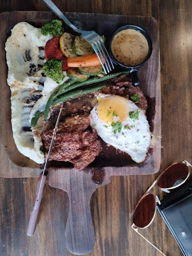 The steak arrived after it's due cooking time. So did the moment of truth. Let me tell you firstly, the veggies were fresh out of the garden. The mashed potato spread out on the plate was a part of design i believe and topped with a fried egg bullseye on the steak. Why? Dunno I guess it's a local thing. Coming to the steak... Trust me it needed no decorations nor extras. The tenderloin meat was cooked just right. The melange of flavours of pepper sauce with garlic, butter & rosemary sprigs with every bite filled your mouth palate begging for more. (Writing this makes my mouth water). I wouldn't be the right person to judge on the price of the dish and tell you if it's pricey for you or not (depends on your pocket really) but i can guarantee you the value in return is definitely worth every penny.