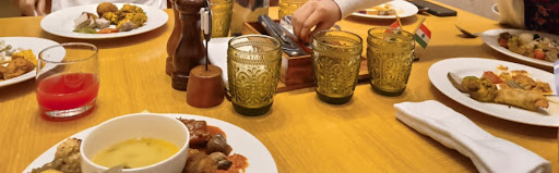 The Lebanese chicken was served with roasted slices of thick cut potatoes and some dip with a little salad, the piece unfortunately we ate last was very undercooked and had blood stains on the inside. We didn't bring it to the waiter's notice. The khubz (arabic bread) served with the chicken was too thick and didn't feel fresh. The lamb dish was so so. The porota was exceptionally made, so was the chicken fry. The starters comprising of hammus, mutabbal was above average.