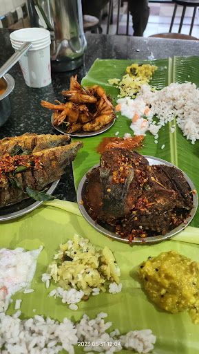 I too visited Mubarak with family today influenced by all the social media hype. Ordered 5 meals, 2 prawns and 2 Choora. Meals was decent but no Sambhar or parippu curry. Prawns was too salty. Choora was normal, nothing to call out. Overall food was average which you would find in any of the normal hotels in trivandrum. Atmosphere is cramped but like any small hotel. But the CALL OUT is that they charged 50 Rs extra for my 4 Yr old son as he was sitting along with my wife. He might have had some fish(paid separately) but hardly anything from the meals. I was surprised but I took the bill with a smile. And I imagined what food quality would you expect from such a greedy bunch of ppl. They would compromise on every aspect to make every penny of profit they can make. If they had to charge they should have laid out a separate...