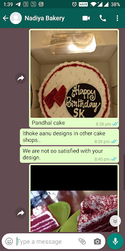 Read moreLast month in jan l, i ordered a red velvet birthday cake for my dad. The rate was ok, taste is good BUT the cake presentation itself was very bad. The writing on the cake was so dumb that i could have done it myself, the cake had a very plain design which myself nor my family was not at all satisfied. I call the person (shop number) and told him about this, his response was"red velvet doesnt have any designs and all the shops does in the same similar way", apo thane nyan Google mapil noki baaki shops inte cake designs ayachu koduthu, he did not even reply after that eventhough he saw the message. Onum parrayan ila... Cake taste good , rate is standard but was a very sad birthday cake to give to my father. I have...