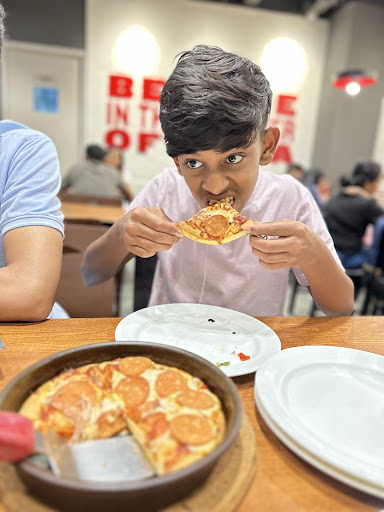 Read moreI had promised my kids that I would take them to a pizza joint and usually I take them to Dominos, but at 12:50pm on a Saturday, Dominos guy says he is still opening up and he will take another 45 minutes and then another 20 minutes to give me my order whatever it was. So I decided to give 🍕Hut a shot. I liked the place, nice and cosy, they gave me the menu and I sat down with it. Crew were courteous and nice but their interactions didn't have any warmth - as in they don't care except doing their job mechanically. Not that I'm going to hold it against them - after my Dominos experience that day, Never. And if you notice, I have given them a 5 🌟.