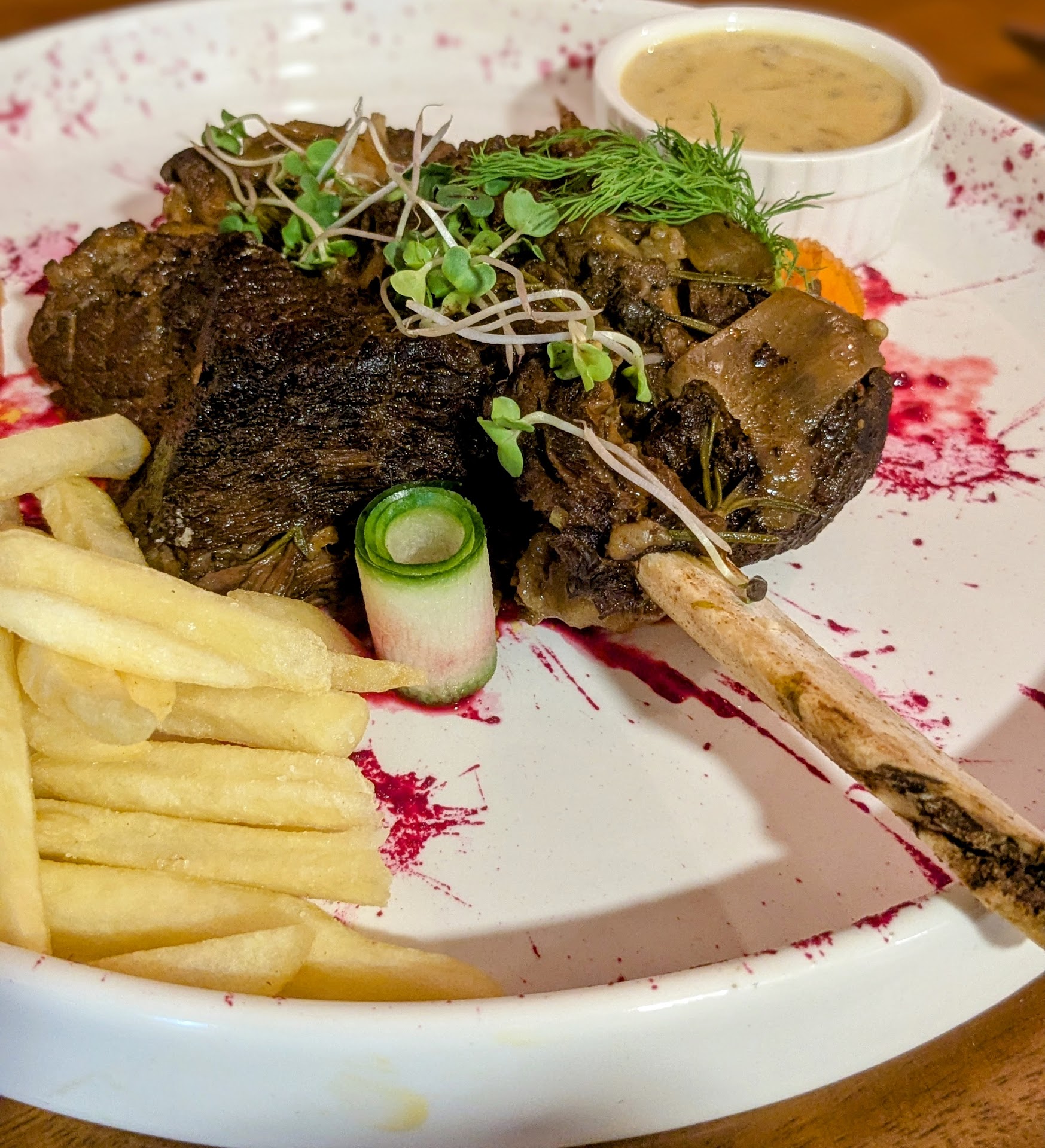 Read moreHad a very nice meal this evening. Staff very welcoming (be careful on the stairs if you are more than 1.75m/5' 10" tall) & attentive all through. Good choice of food including local specials. We asked if they did garlic bread as a sharing starter & the waiter said they did a rosemary & garlic focaccia. Actually it was more like a pizza base, definitely not a focaccia but delicious none the less. My dish was beef short ribs, which was amazing & proper slow-cooked, fall-off-the-bone. My mistake was to ask for the mashed potato to be swapped for fries, which of course they did but mash would have been much better. We moved tables twice because it was quite chilly under the fans or in front of the A/C. Apart from that it was a great...