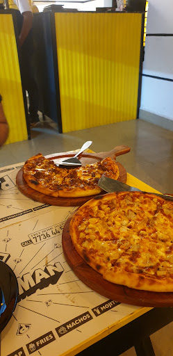 Extending my hunt for good pizzas in India, I had pizza from here a month back on my visit to kochi. This review is pretty late from that time but the experience still lingers to me like it was few minutes back. Pizzaman's one usp is there really exists a yellow caped crusader who delivers pizza to your doorstep if you're in the serviceable radius. It really makes it for a fun experience but I and my trustworthy buddy had a dine in in their restaurant. It is pretty big compound with ample parking and decent indoor and outdoor seating although getting there from the city is a little cumbersome especially if you're in a bigger vehicle. Consider taking the main road with wider roads in that case. Once you see the extremely yellow themed restaurant yiu know it's a place meant for the young and vibey gen z. Wonderful ambience but could do a bit better with the washroom experience. You are greeted by very pleasant and customer friendly staff. Their menu is quite extensive and is 💯 different from all other regular pizza we get. We tried the goan beef pizza and the Hawaiian pizza. The pizza is cooked fver so wonderfully in a pretty soft and semi dense dough base. It is certainly not the lightest I've had but it is the lightest and most comforting one I had in kerala. The topping however is to die for. You get an amazing blast of flavours through out every slice of beef and indian spices and the cheese. The oil used seems to be flavourful too. I'm still not a fan of the pineapple on pizza concept but Hawaiian pizza was good too but nothing to write home about. The only problen we faced was the lack of diet coke or Pepsi (I know it's ironical lol) but having that would have been what i call a perfect pizza night. I highly reccomend this place for having pizzas. I don't think any pizzeria in kerala comes close to the experience they offer. Area of improvement is only in the washroom side I believe. Hoping to see more branches open pan kerala maintaining the same quality of food. Looking forward to...