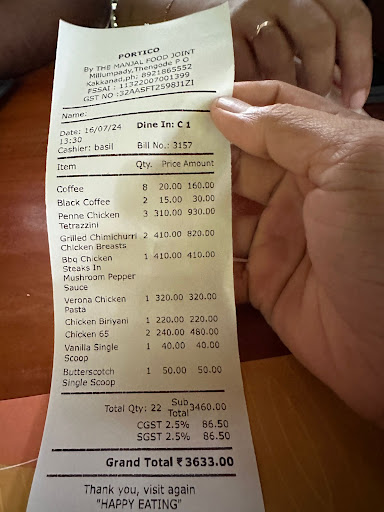 I sincerely hope that the management of Portico by The Manjal Food Joint takes this feedback seriously and works on improving their customer service. Without a doubt, a significant change is needed to ensure that patrons feel valued and appreciated during their visit. Until then, I cannot recommend this establishment to others and will be hesitant to...