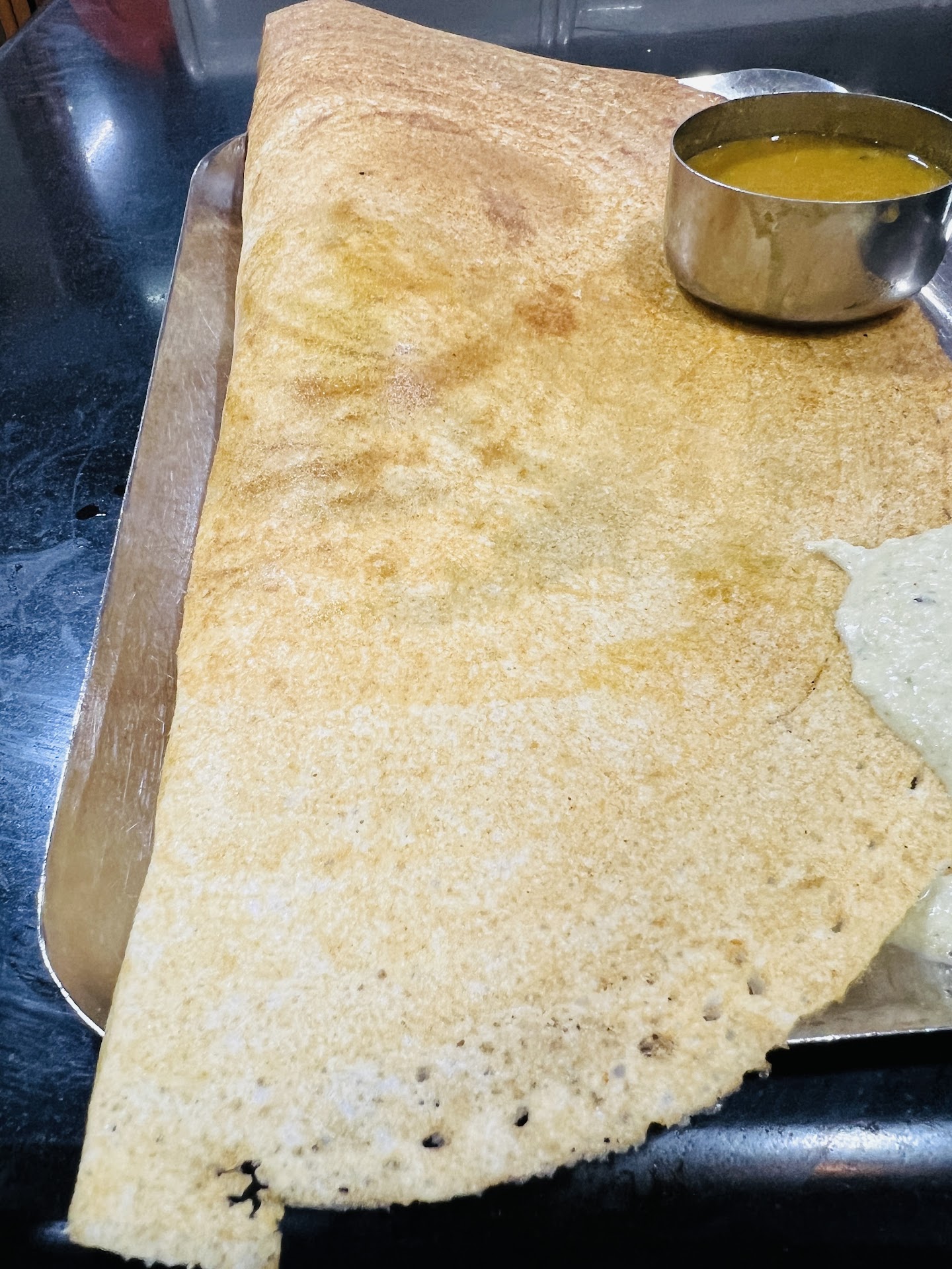 Though the aim of visiting Guruvayoor is not to get a good food rather than getting the glory view of almighty, I wish to share my recent experience I had from this restaurant. It was a clear evening where there was no any much flow. I had ordered the masala dosa and tea . Not much waiting I got the dosa which looks the rice selected for that dosa doesn’t match and looks overcooked with some burnt portions.Without whining I had that and was about to drink some water where it look water jug was empty. Looking around ,there was a server walking towards our side, I asked for some water which he acknowledged with a deadly face and silence. Nearly 8 minutes I waited for the water which I can see the person I asked for the water has passed couple of times across our table where he showed his purposeful negligence for no reason. I was thinking for what reason a customer like me should pay and face such kind of unethical attitude which I can’t understand. While observing the overall service pattern what I understood is the servers are categorizing the customers based on their potentials for getting good amount as TIPS (if any). So if a server is attending a table, there won’t be any help we can expect from others because that table and tips (if any) belongs to that particular server which other servers are least bothered to help at least to get some water where they feel why should they do since they are not benefited.