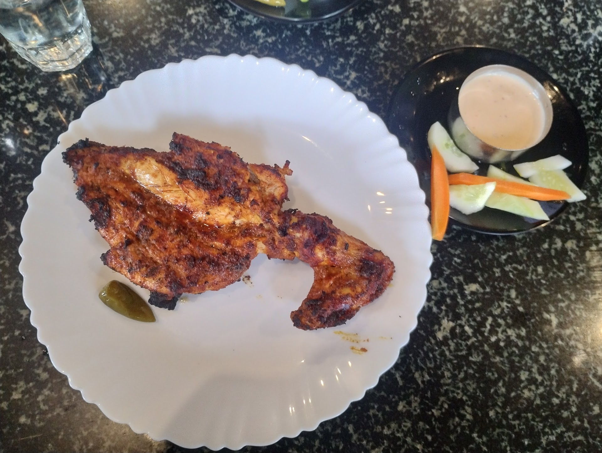 We ordered BBQ, rumali roti, and chicken biryani. Since rumali roti was unavailable, they asked if porotta would be fine and then served porotta instead. The BBQ was average, but the hot and crispy porotta was good. However, the chicken biryani was disappointing.
