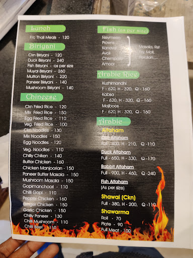 Yesterday 29/12/2019, we tried porotta, beef roast, beef curry, and chicken chilly... porotta and chappathi - good, hot, smooth... beef roast - average with about 10- 15 small pieces of beef and lot of gravy... beef curry same item with lot of gravy and about 5 to 10 pieces of beef... chilly chicken. 10-12 small pieces with lot of sauce and very sweet in taste... really not at all recommend this hotel... only good thing is nice ambience... quality average Quantity-very low....