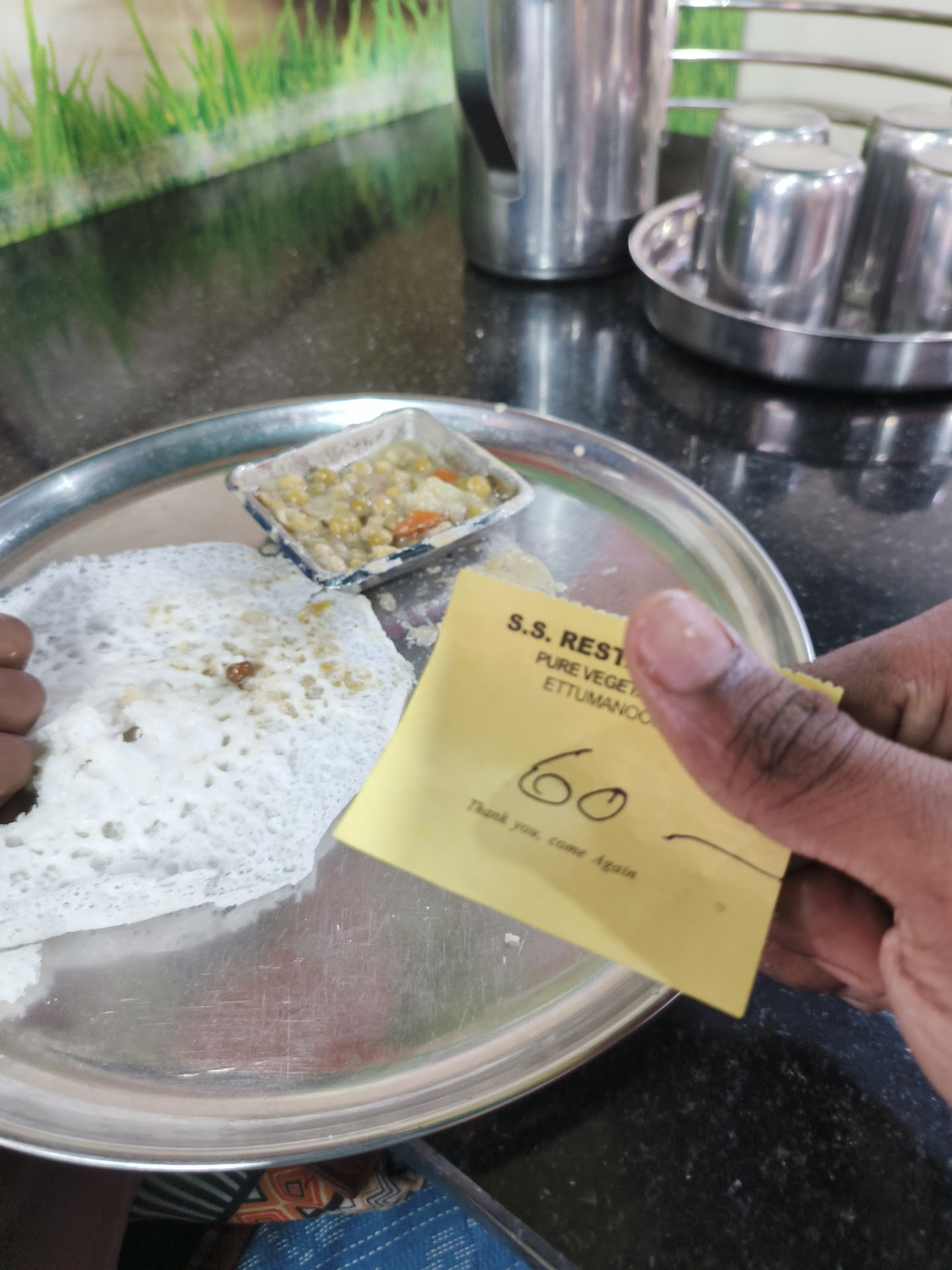 Read moreAvante oke Tissue paper polathe palappavum 40 rupede Thanutha Greenpeas kariyum... Kazhichitt vayar vedana eduth sardhich oral ivde kidappund... Masala dosa undenn paranjit irunnatha oru karnnoru vannitt masaladosa illa Net roast ittittund enn... (Masaladosa70- neyroast -60) nan neyroast choich polimilla.. nan poori mathi enn paranjappo poori illenn paranju.. neyroast ittittundenn.. venda enn paranjapo enkil poori edukkamenn.. plate vrithiyilla glassiloke entho pole... Korach maryadha oke vendeda food kodukkumpo Sardhi marunnilla Avante oke 40 ruvede...