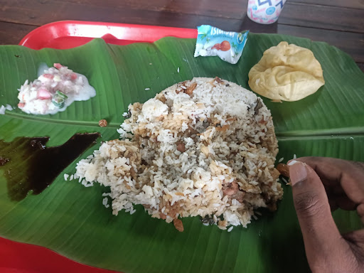 The Good: A bunch of amateurs trying to run a restaurant..LOL. I had the fish combo meals. It came with rice, 2 sides(thoran,etc.), a pickle and pappadam, a fish curry, and anchovies fried. Pleasantly surprised by the "puzha meen" curry. The "chaar" options were fish gravy, chicken rasam and sambar....all served on a banana leaf. What I liked was the quantity of rice served...not too much to get bloated! Just enough for me. I am not sure if they served more rice if you asked. But I didn't see anyone get a second serve. I loved them bring everything pre-served on a banana leaf upon a tray. The Bad: A bunch of amateurs trying to run a restaurant. I would've loved to see more vegetables served. Whatever the vegetable portion on the leaf was barely a snuff. Maybe they would've served more but was not asked. The "chaar" vessel kept hoping around different tables playing "Catch me if you can" 😉. As I was about to leave a friendly staff apologized about the lacking, and said they were overwhelmed by the amount of people coming in, as they had just recently started, caught them by surprise! There was no menu offered...I had to check online. The Ugly: A bunch of......yeah! NO TOILET!!! EEKS. There was no paper napkins at the wash station either. Had to ask them ...found it at the payment counter. Conclusion: There is a lot of room for improvement. But I think younger crowd would love this place. I really wonder how their biriyani tastes!! Will try if I get a chance next...